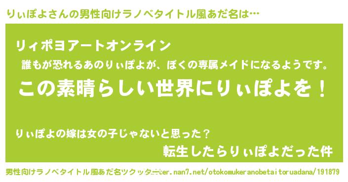 | 女子向けラノベタイトル風あだ名 | 『乙女ゲームの破滅フラグしかない悪役りぃぽよに転生してしまった…』 |