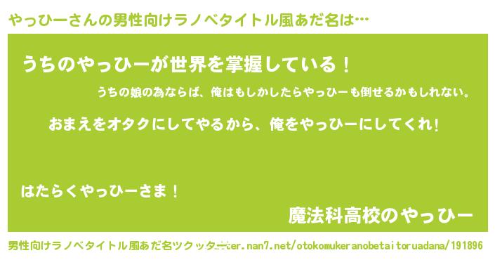 | 女子向けラノベタイトル風あだ名 | 『やっひー夫妻のなれそめ』 |