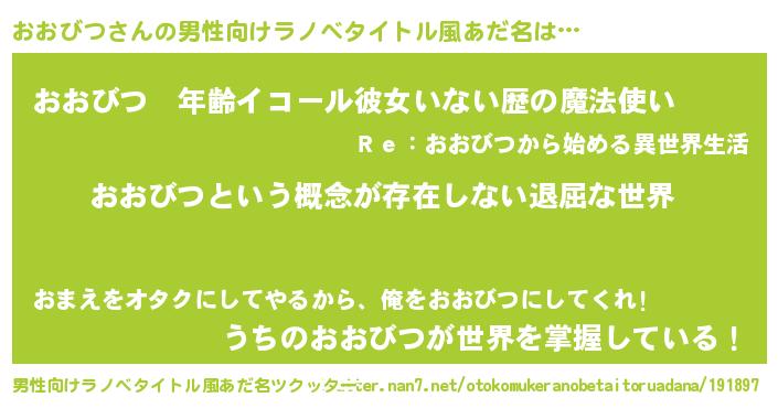 | 胡散臭い通販商品みたいなあだ名 | 『来世でも幸せになれる水素水…その名も「おおびつ」』 |