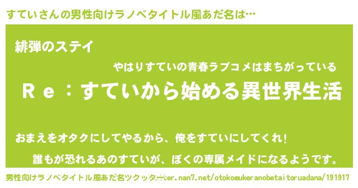 | 女子向けラノベタイトル風あだ名 | 『闇のすてい』『すていの雑貨屋さん』 |