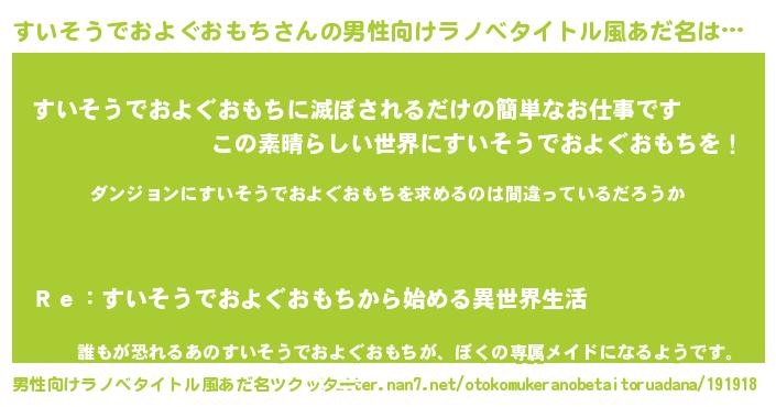 | 欧米人風あだ名 | 『ウサインすいそうでおよぐおもち』 |