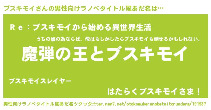 | ヒーロー風カッコイイあだ名 | 『仮面ブスダー』『究極戦士ブスキモイ』 |