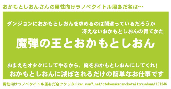 | 意味不明あだ名 | 『住所不定無職おかもとしおん(74歳)』 |