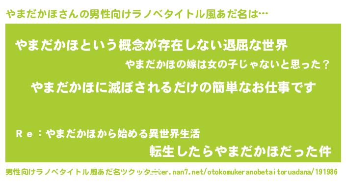 | 意味不明あだ名 | 『永久保存やまだかほ』『自称やまだかほ』 |