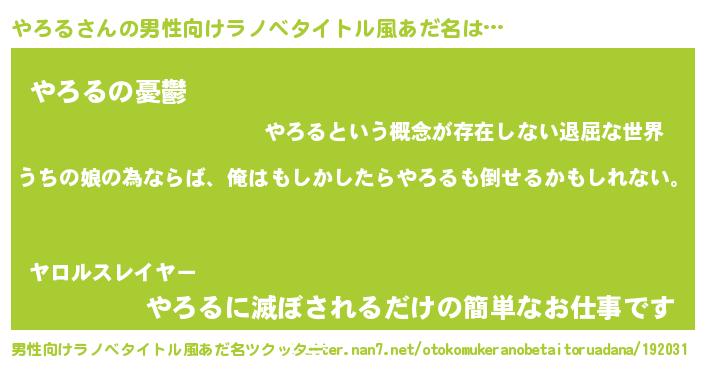 | 女子向けラノベタイトル風あだ名 | 『やろるの婚約者』 |