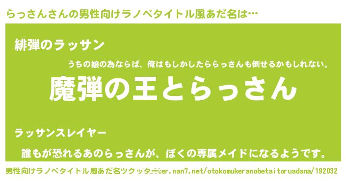 | 伝説のあだ名 | 『古より伝わる勇者らっさん』 |
