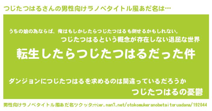 | 女子向けラノベタイトル風あだ名 | 『つじたつはるの玉の輿計画!』 |