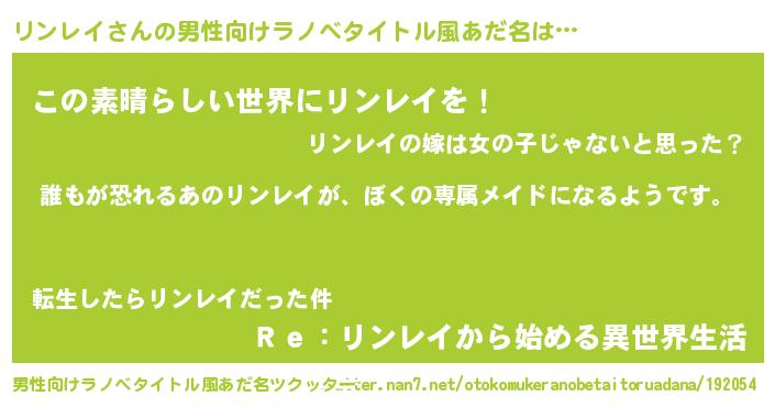 リンレイさんの男性向けラノベタイトル風あだ名をツクッター!