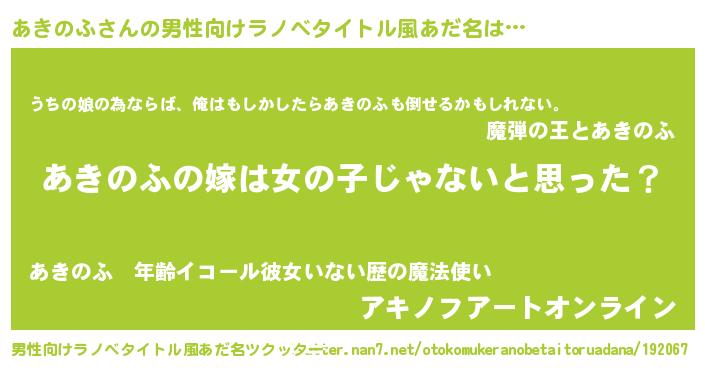 | ポケモン風あだ名 | 『ヒアキノフ』『アキノダネ』 |