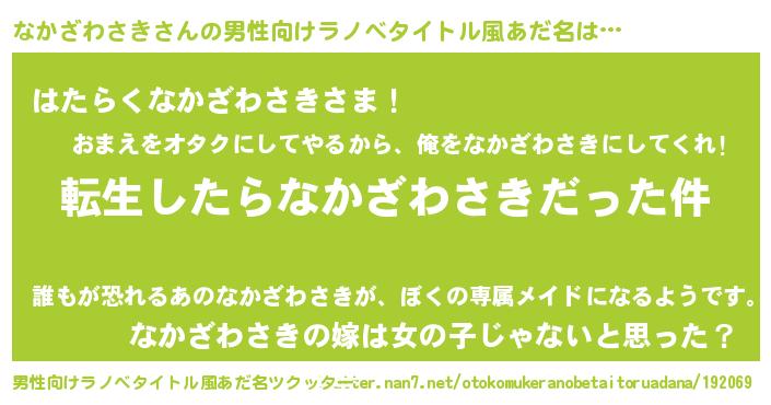 | ヘコむあだ名 | 『なかっ子』『なかざわさき(笑)』 |