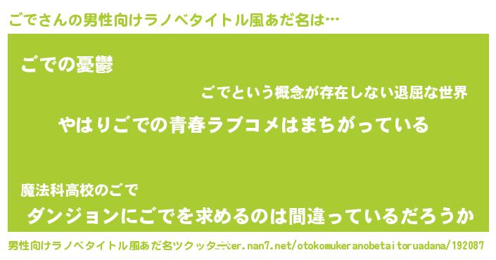 | ファンタジー風あだ名 | 『エターナルゴデー』『ゴデフェル』 |