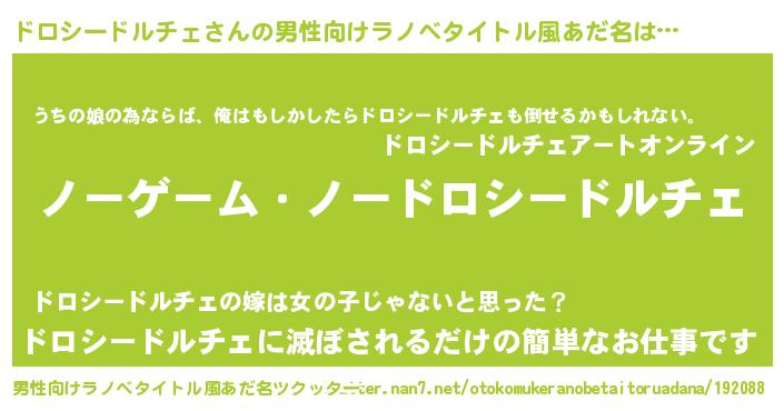 | 女子向けラノベタイトル風あだ名 | 『死神ドロシードルチェの再婚』 |