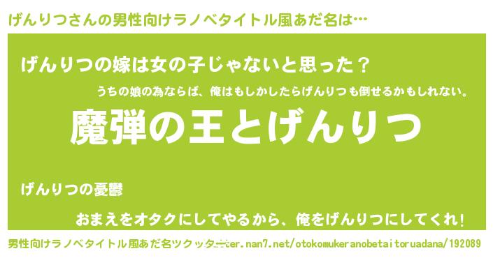 | ヒーロー風カッコイイあだ名 | 『仮面ゲンダー』『天弓騎士ゲン』 |