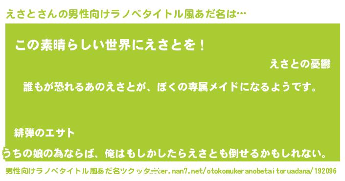 | 女子向けラノベタイトル風あだ名 | 『異世界でカフェえさとを開店しました。』 |