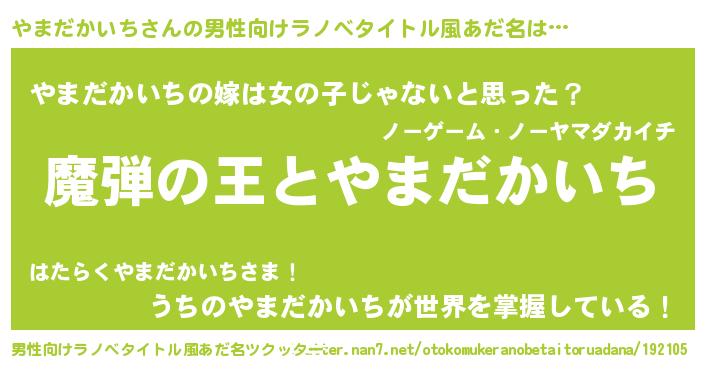 | 女子向けラノベタイトル風あだ名 | 『やまだかいちが死なない童話 林檎のやまだかいちの診療簿』 |