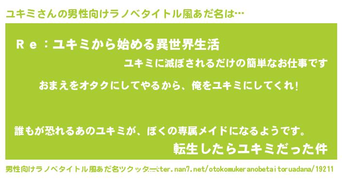 | 女子向けラノベタイトル風あだ名 | 『ユキミ夫妻のなれそめ』『闇のユキミ』 |