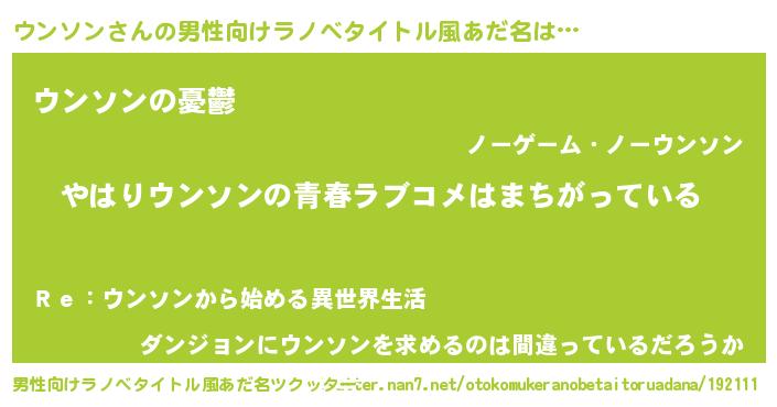 | 女子向けラノベタイトル風あだ名 | 『ウンソンの雑貨屋さん』『闇のウンソン』 |