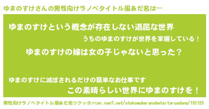 | 意味不明あだ名 | 『とにかく怪しいゆまのすけ』 |