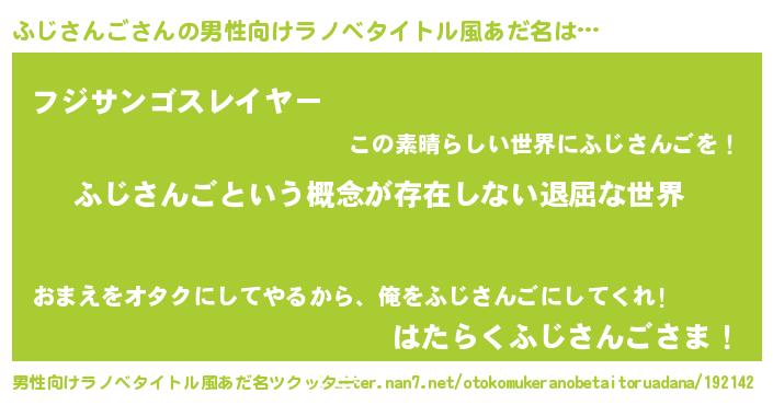 | 女子向けラノベタイトル風あだ名 | 『異世界で失敗しない100のふじさんご』 |