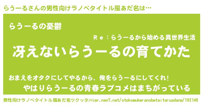 | ヘコむあだ名 | 『らうもー』『牛乳』『らうっちょ』 |