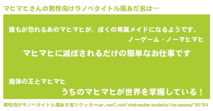 | ファンタジー風あだ名 | 『マヒディッシュ』『カークマヒラー』 |
