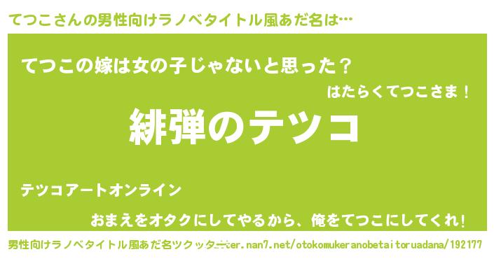 | ヒーロー風カッコイイあだ名 | 『魔戒騎士テツ』『愛の使者てつこ』 |
