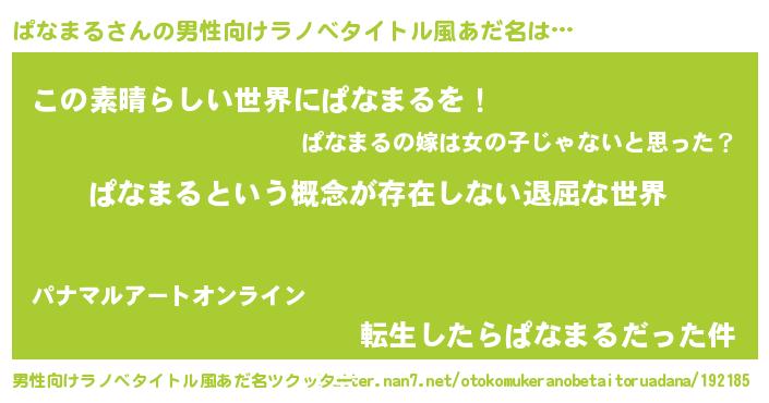 | 女子向けラノベタイトル風あだ名 | 『異世界で失敗しない100のぱなまる』 |