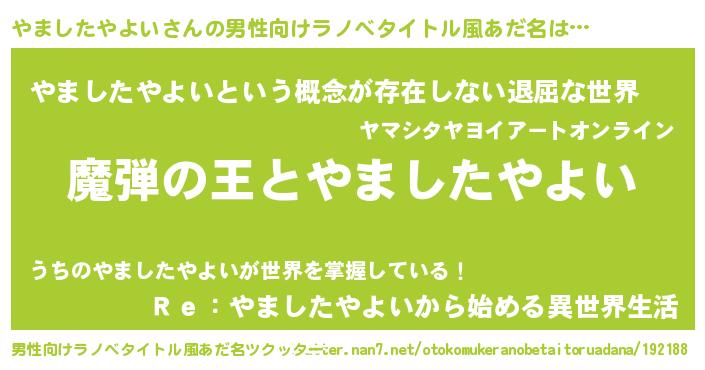| ファンタジー風あだ名 | 『ヴァルヤマーナ』『ヤマディッシュ』 |