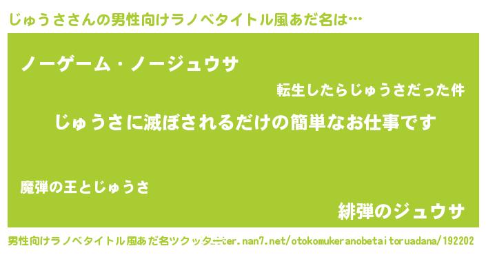 | ヒーロー風カッコイイあだ名 | 『慈愛の使者じゅうさ』『仮面ジュダー』 |
