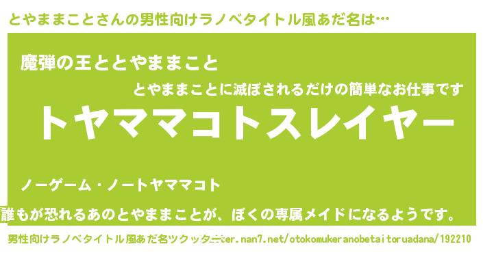| ヒーロー風カッコイイあだ名 | 『仮面トヤダー』『ネオトヤママコト』 |
