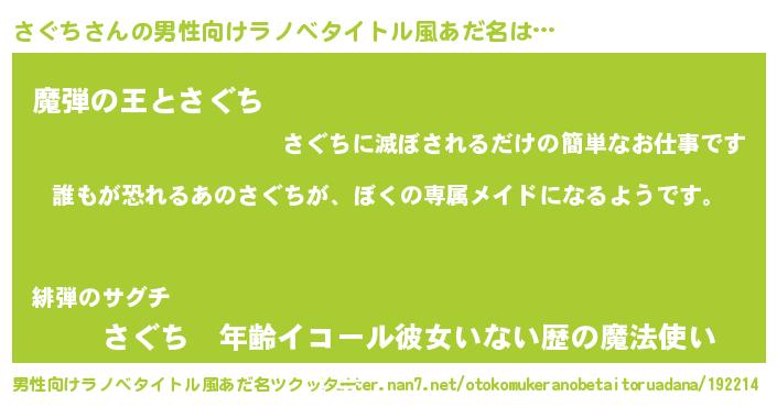 | 胡散臭い通販商品みたいなあだ名 | 『来世でも幸せになれる水素水…その名も「さぐち」』 |
