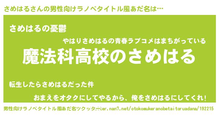 | 女子向けラノベタイトル風あだ名 | 『さめはるアンティーク』 |