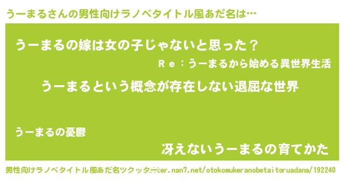 | ヘコむあだ名 | 『うーまる(苦笑)』『うーを』 |