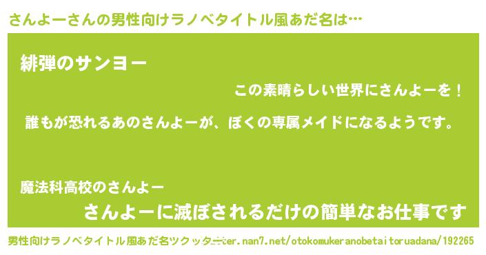 | ヘコむあだ名 | 『さんよー(遠い目)』『さんもー』 |