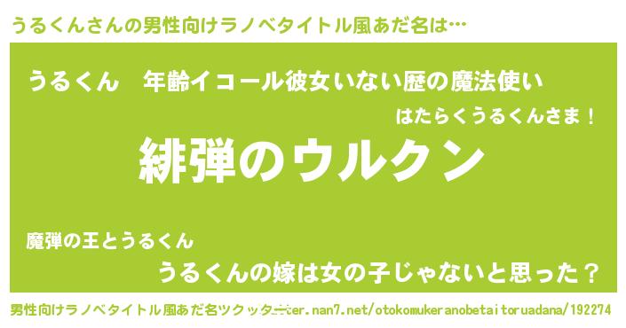 | ヒーロー風カッコイイあだ名 | 『黄金騎士ウル』『仮面ウルダー』 |