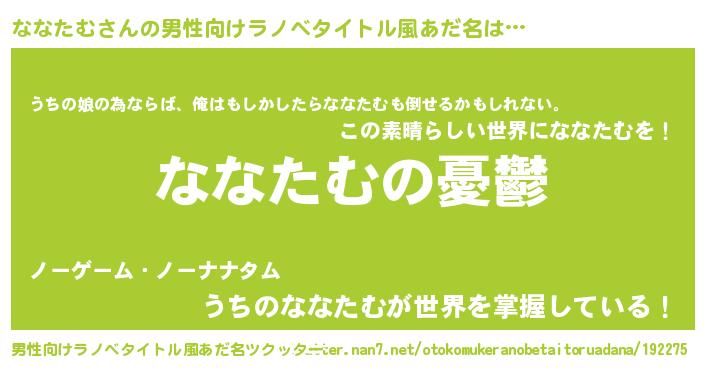 | 胡散臭い通販商品みたいなあだ名 | 『モテモテ間違いなし水晶球…その名も「ななたむ」』 |