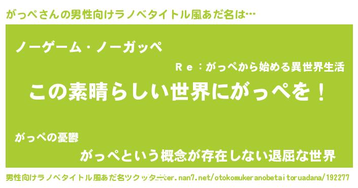 | 意味不明あだ名 | 『住所不定無職がっぺ(43歳)』『自称がっぺ』 |