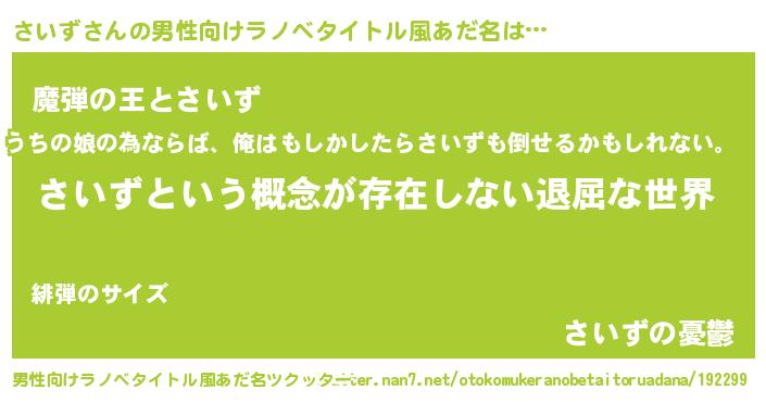 | 女子向けラノベタイトル風あだ名 | 『異世界で失敗しない100のさいず』 |