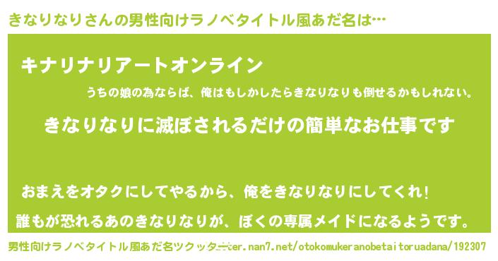 | 胡散臭い通販商品みたいなあだ名 | 『億万長者になれるブレスレット…その名も「きなりなり」』 |
