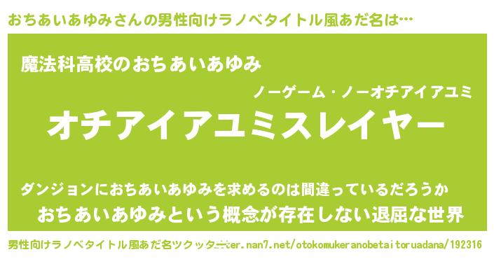 | 料理風あだ名 | 『おちあいあゆみごはん』 |