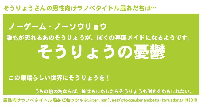 | 女子向けラノベタイトル風あだ名 | 『(仮)そうりょうのやんごとなき事情』 |