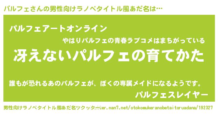 | ヒーロー風カッコイイあだ名 | 『スーパーパルフェ』『ネオパルフェ』 |