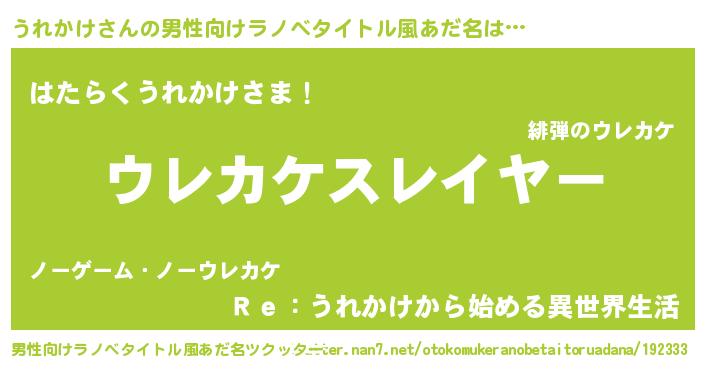 | ヒーロー風カッコイイあだ名 | 『ウルトラ戦士ウレカケ』『仮面ウレダー』 |