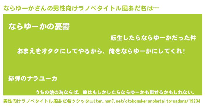 | ヒーロー風カッコイイあだ名 | 『正義の使者ならゆーか』『幻影騎士ナラ』 |