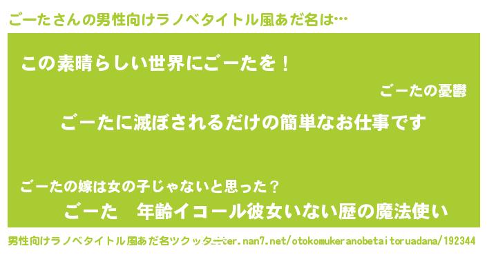 | 意味不明あだ名 | 『住所不定無職ごーた(62歳)』 |