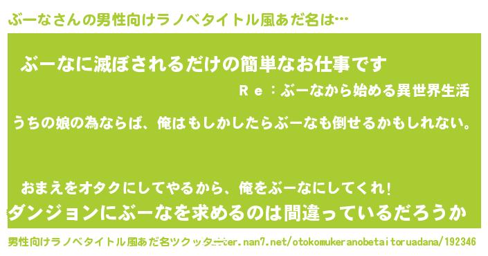 | 胡散臭い通販商品みたいなあだ名 | 『運命の人と巡り会える高級そうな壺…その名も「ぶーな」』 |