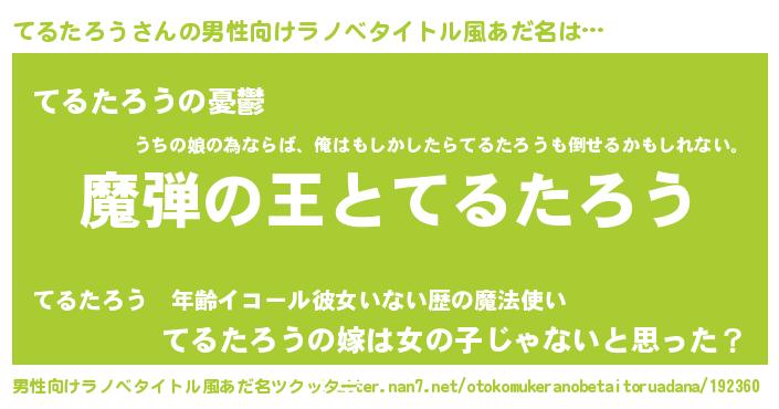 | 女子向けラノベタイトル風あだ名 | 『乙女ゲームの破滅フラグしかない悪役てるたろうに転生してしまった…』 |