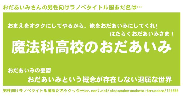 | 肩書あだ名 | 『おだあいみ総統』『おだあいみ学科長』 |