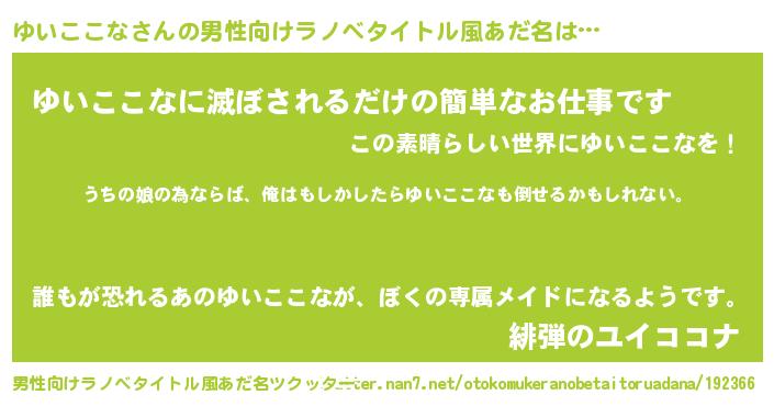 | ファンタジー風あだ名 | 『エターナルユイココナー』『ゼユイトゥ』 |
