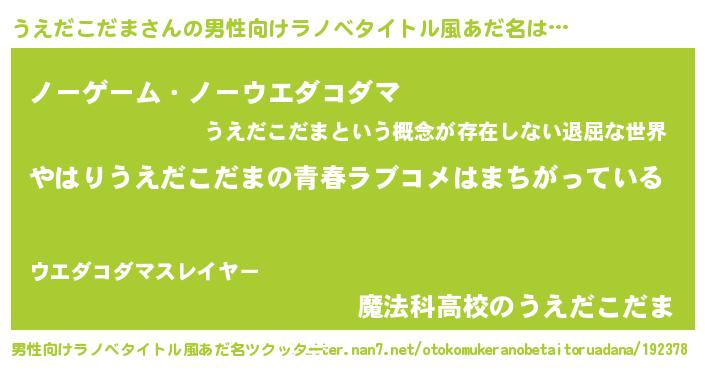| 女子向けラノベタイトル風あだ名 | 『うえだこだま伯爵の花嫁』 |